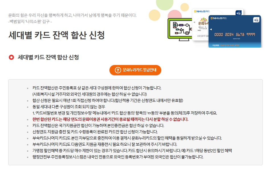 문화누리카드 사용방법: 충전, 잔액조회, 가족합산
